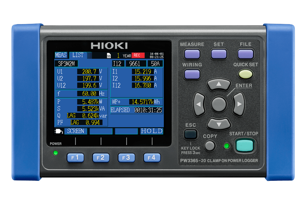 | Measurement items | Voltage RMS, current RMS, voltage fundamental wave value, current fundamental wave value, voltage fundamental wave phase angle, current fundamental wave phase angle, frequency (U1), voltage waveform peak (absolute value), current waveform peak (absolute value), active power, reactive power, apparent power, power factor (with lag/lead display) or displacement power factor (with lag/lead display), active energy (consumption, regeneration), reactive energy (lag, lead), energy cost display, active power demand quantity (consumption, regeneration), reactive power demand quantity (lag, lead), active power demand value (consumption, regeneration), reactive power demand value (lag, lead), power factor demand | |||||