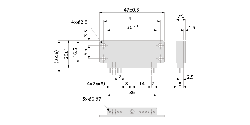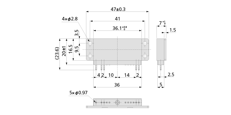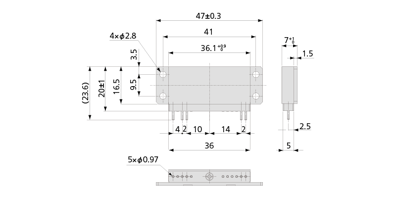 47 W × 7 H × 20 D mm (Excluding protrusions, with adapter) |