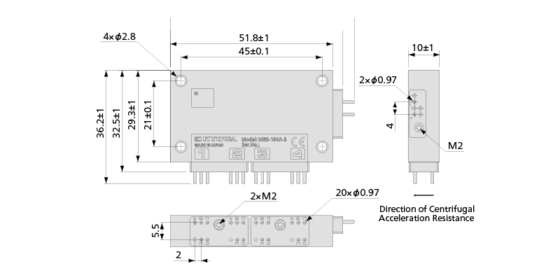 980.7 m/s2 (100 G), 11 ms or less, half sine wave*If the ambient temperature exceeds 50°C, it cannot be used in a vibration, shock, centrifugal acceleration by fixing the bolts in the body mounting holes. |