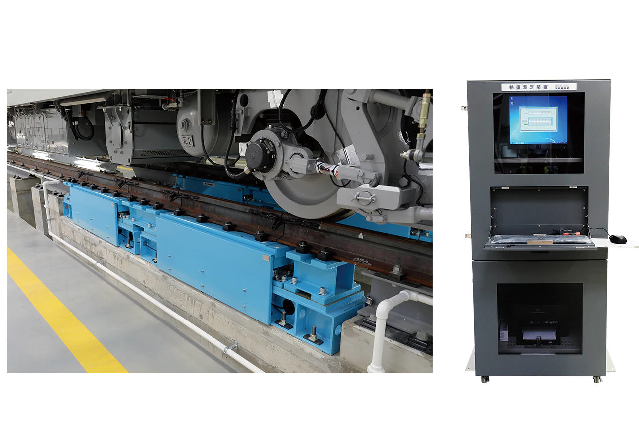 This pit-type system requires the left and right rails to be pre-split approximately 120 cm, with multiple load cells installed underneath to measure wheel load. The measurement stand (sensor) uses four compact load cells and consists of a junction box, data processing system, PC, and printer, allowing for wheel load to be measured accurately. Wheel load output is amplified by a strain amplifier and then captured by a PC through an AD converter, allowing the measurement date/time, wheel load, left/right wheel load ratio, and total weight to be displayed and even printed using a printer.