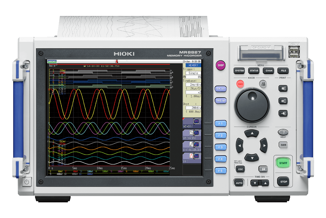 | Data storage media | USB memory stick, CF card, Built-in SSD unit (option, 128GB) *Approx. 125 sec. when saving 100 MB of data *Data of 100 MB in size can record 16,000 div waveforms across 32 channels. |