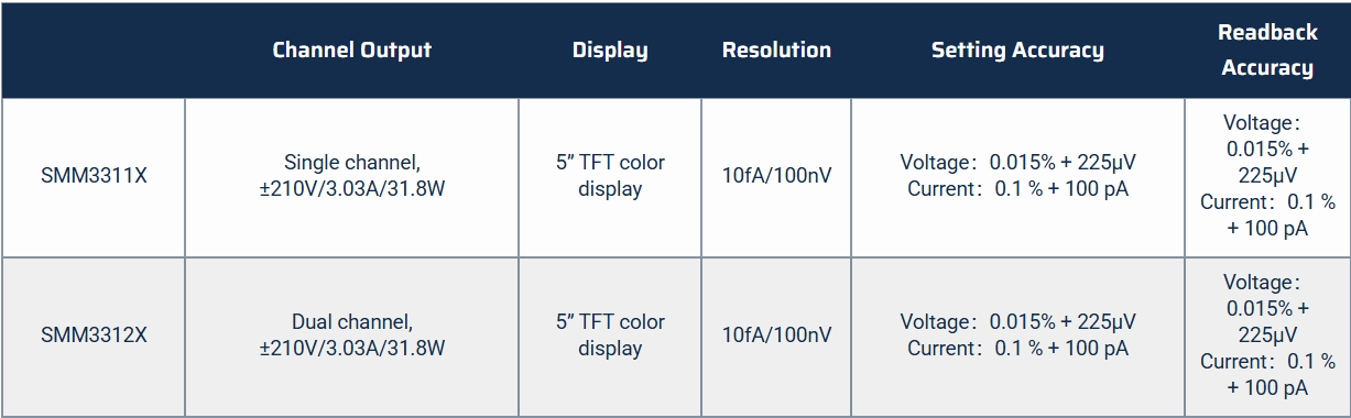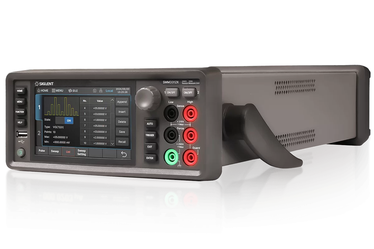 SMM3000X series is an accurate source/measuring unit (SMU) instrument, which can output and measure voltage and current at the same time. It integrates the functions of current source, voltage source, voltmeter and ammeter, and is especially suitable for semiconductor characteristic analysis, nano-scale devices and materials, organic semiconductors and other testing applications.