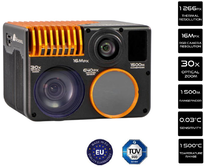 The first RGB camera comes with 16Mpx resolution.,which is designed primarily for high-resolution imagery and terrain mapping. Second RGB camera comes with Full HD (1920 x 1080 px) resolution and, most importantly, it provides an absolutely unrivaled optical ultrazoom 30x in real-time, which is suitable for security applications.
